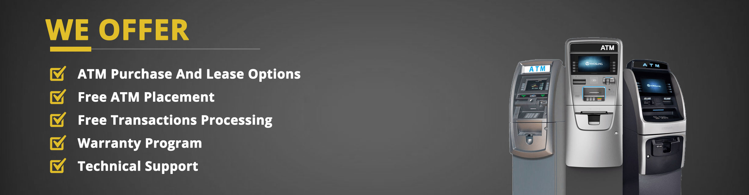 If you purchase an ATM from us, it will come with free transaction processing service. If you own an existing ATM and would like to avail our transaction processing service, we can do that at no cost to you.
